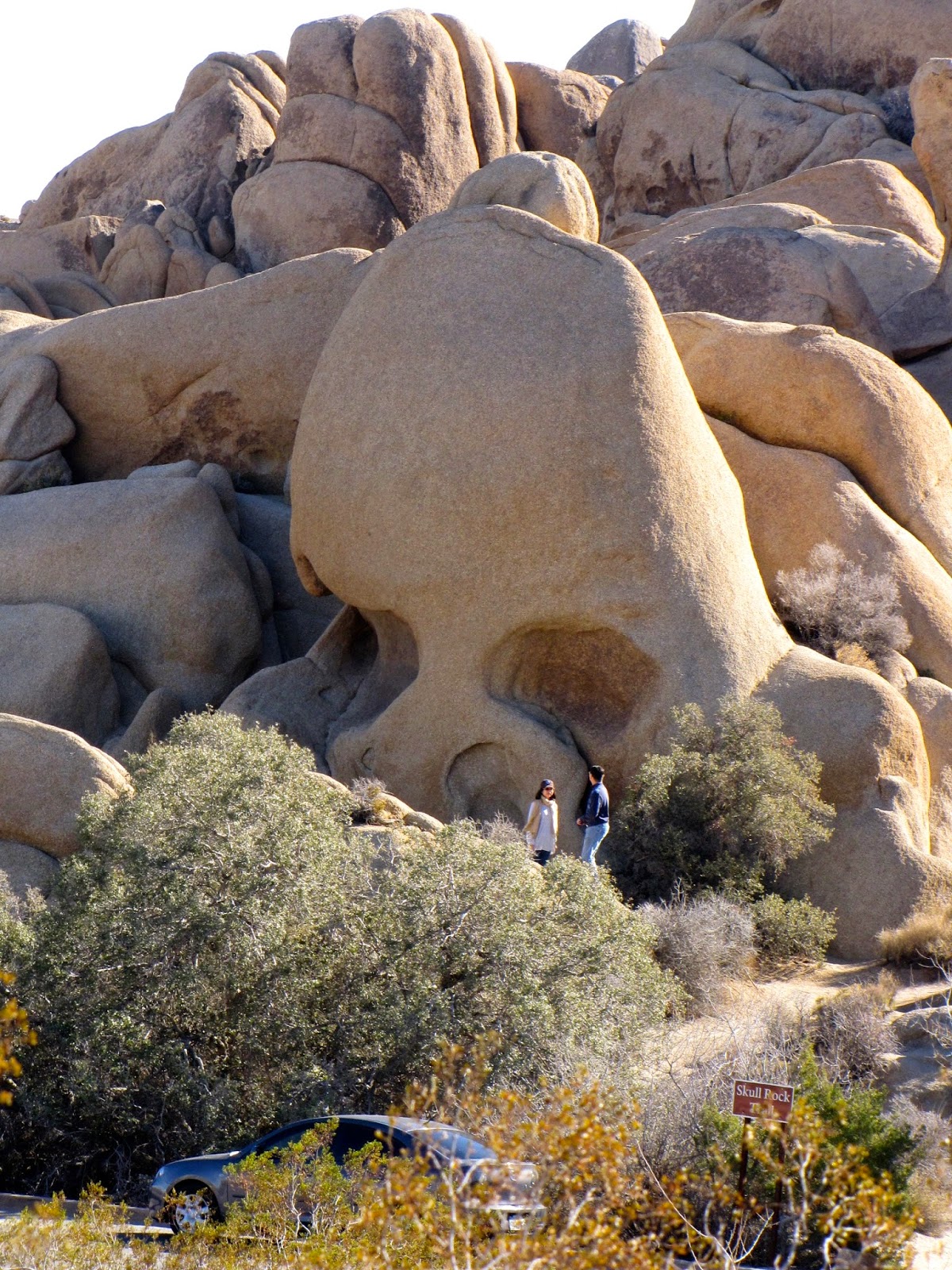 We hiked to Skull Rock. We saw a Roadtrek parked by the road and as always had to search out the owner. We were delighted to meet energetic Mary from Sheboygan, WI. We learned there was going to be a Ranger led hike and joined in.We learned about dikes. The line of white rocks through the boulder.